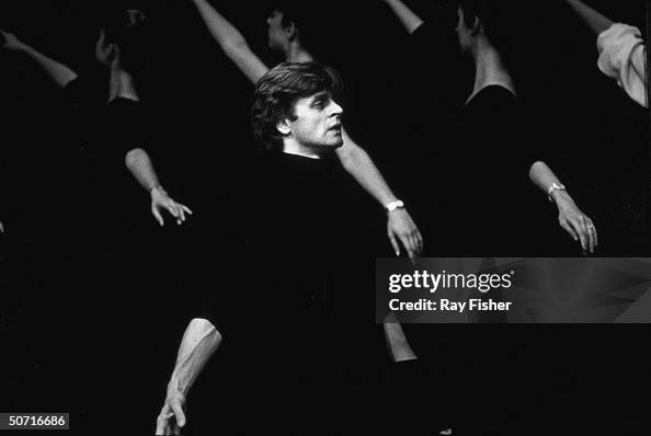 Ballet dancer Mikhail Baryshnikov and corps of Amercian Ballet Theater company during rehearsal. (Photo by Ray Fisher/Getty Images)